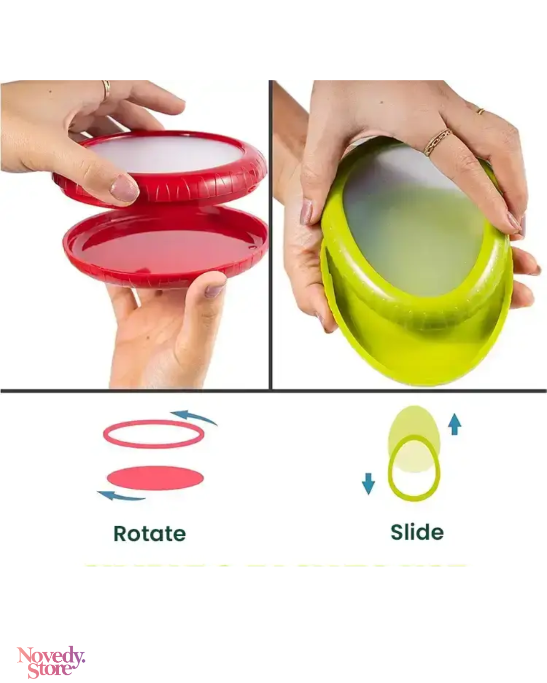 🥗 Su diseño de silicona ultrasuave se ajusta a cualquier fruta o verdura cortada, creando un sellado hermético que evita que se resequen, entren bacterias, absorban olores o se estropeen en el frigorífico.