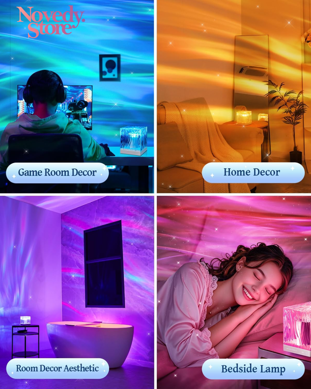 La Lámpara Aurora Boreal crea una atmósfera envolvente, relajante y visualmente espectacular que cambia por completo cómo te sientes en tu propio espacio.